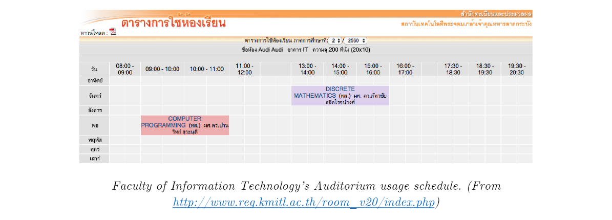 Rooms that are visible to all users are mostly large lecture halls and are from the facul-ties that constantly push new information to the service (for example, Prince Sirind-horn’s General Instruction Building).